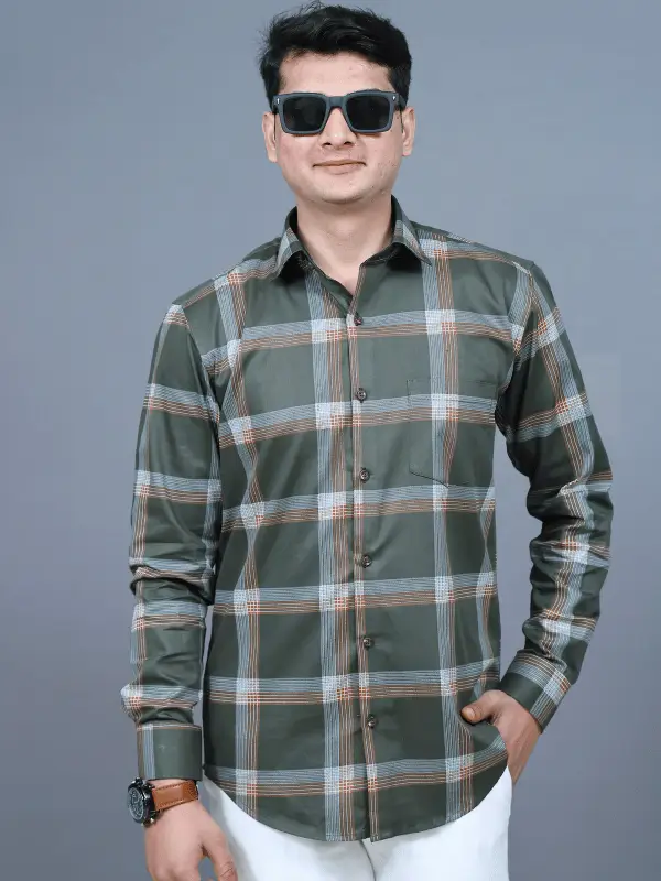 Men’s Regular Fit Checkered Collar Casual Shirt